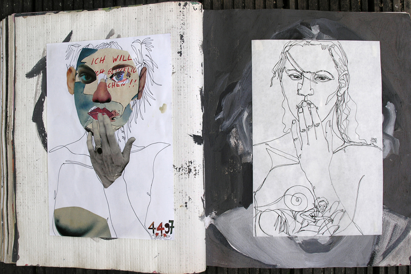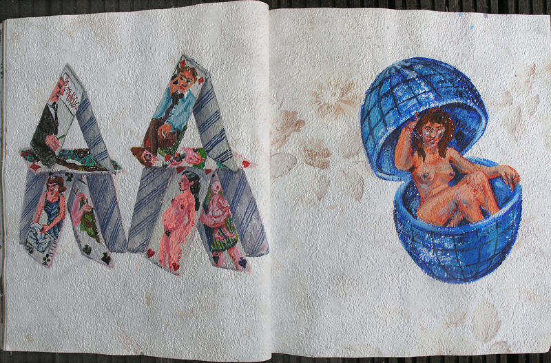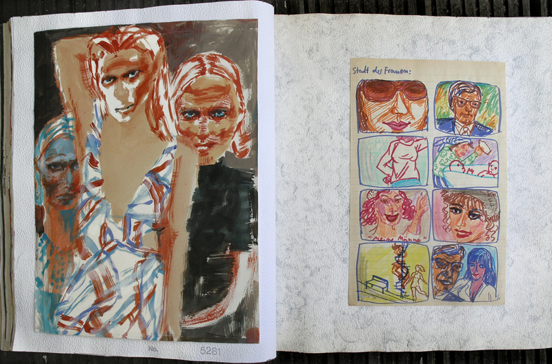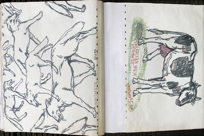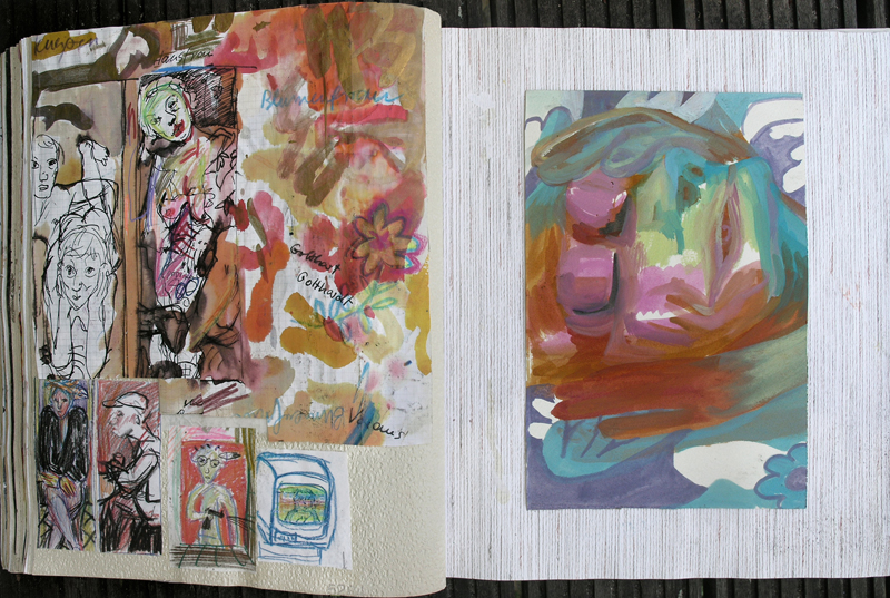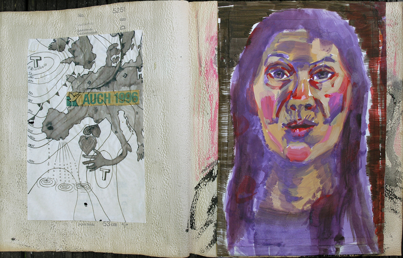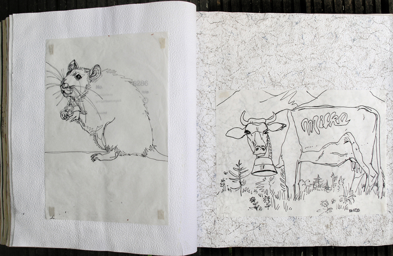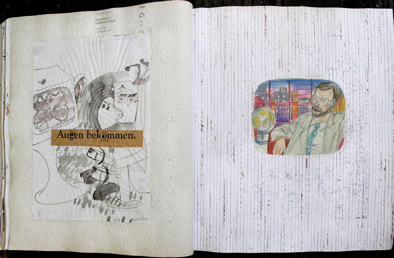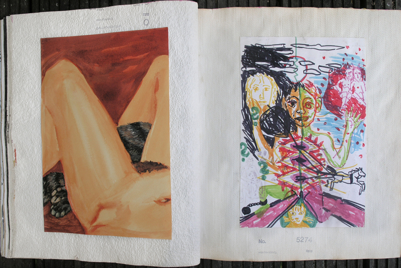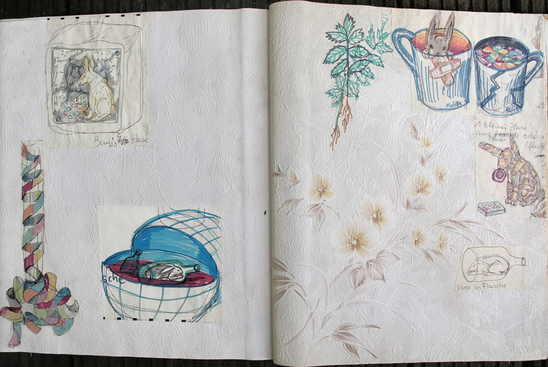 , Zeichnungen und Bilder in Tapetenmusterbuch, Mixed Media, 50 Doppelseiten, 40 x 40 x 5 cm, 1993 - 2011