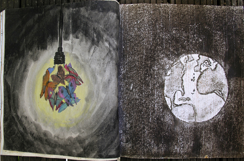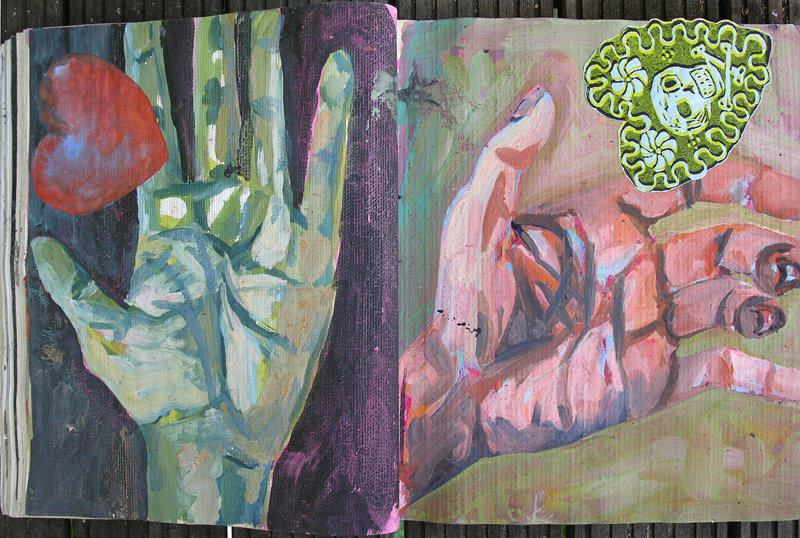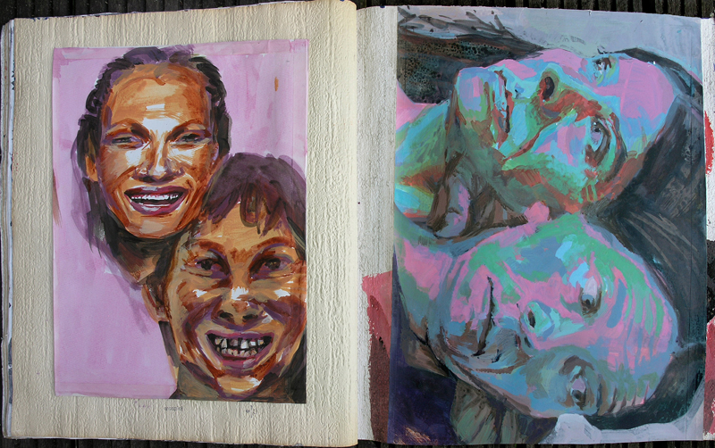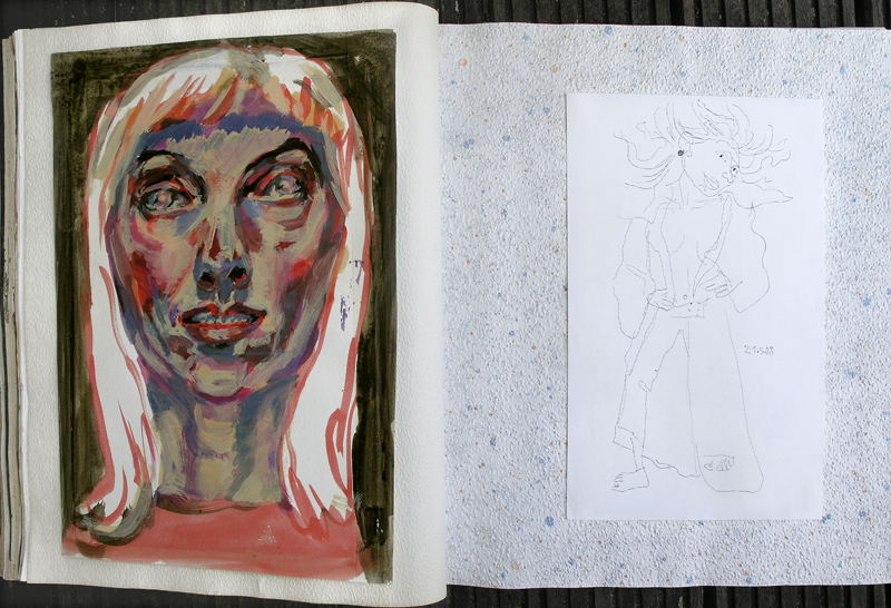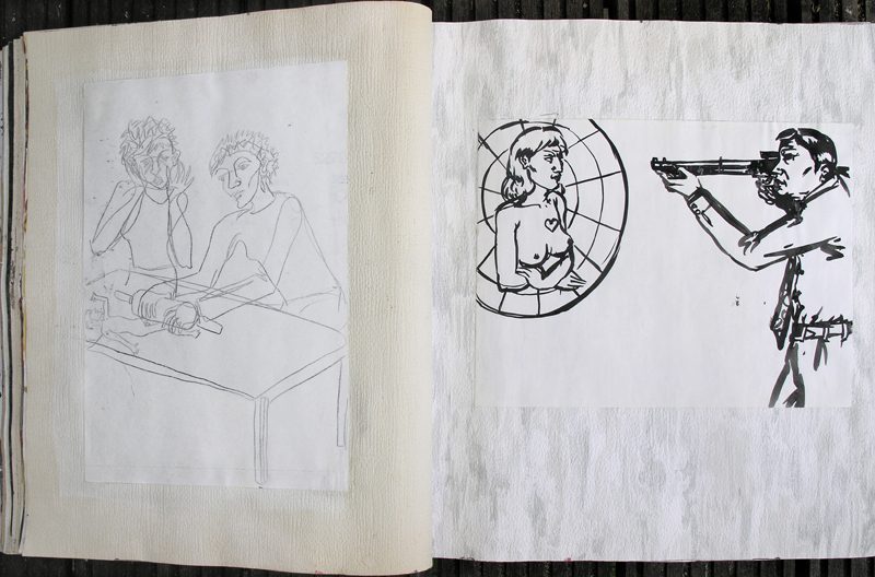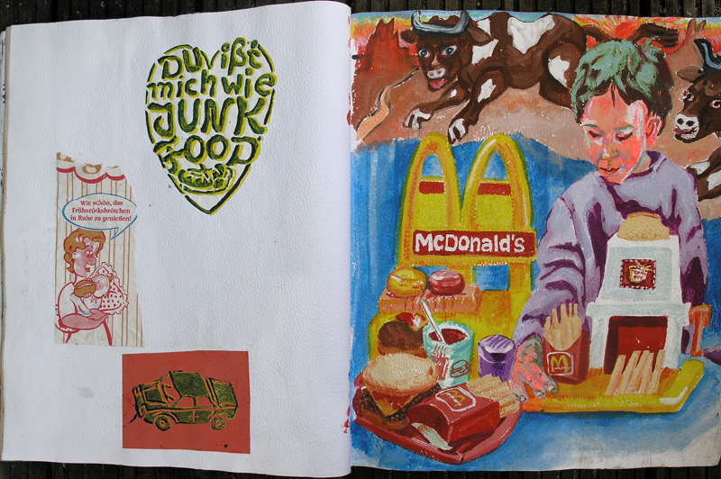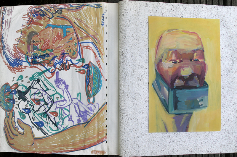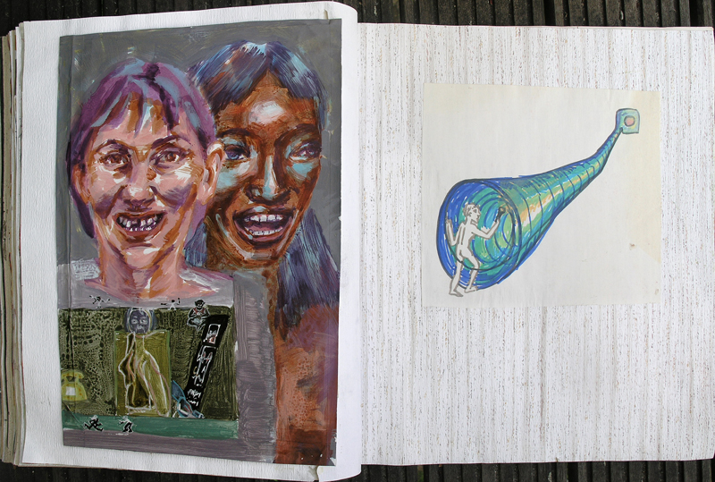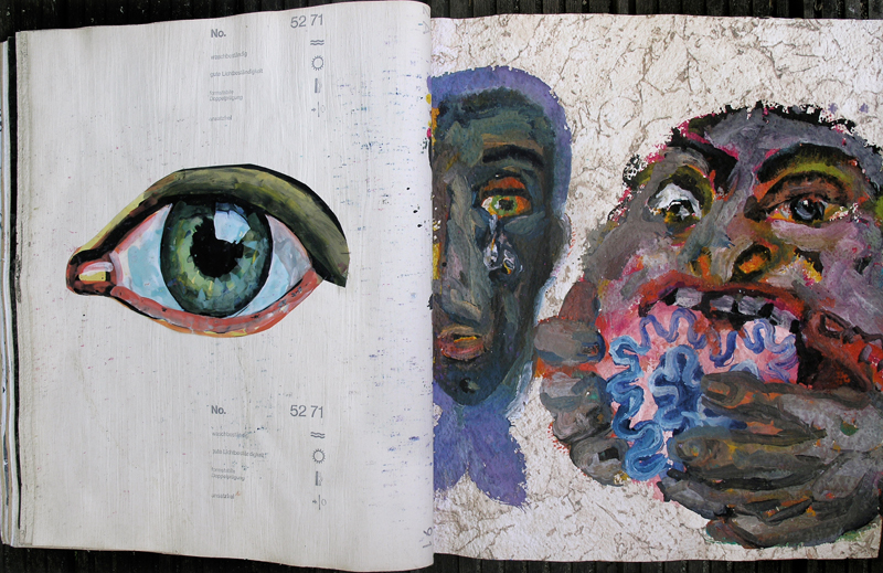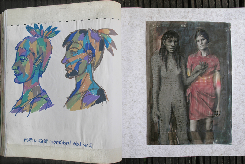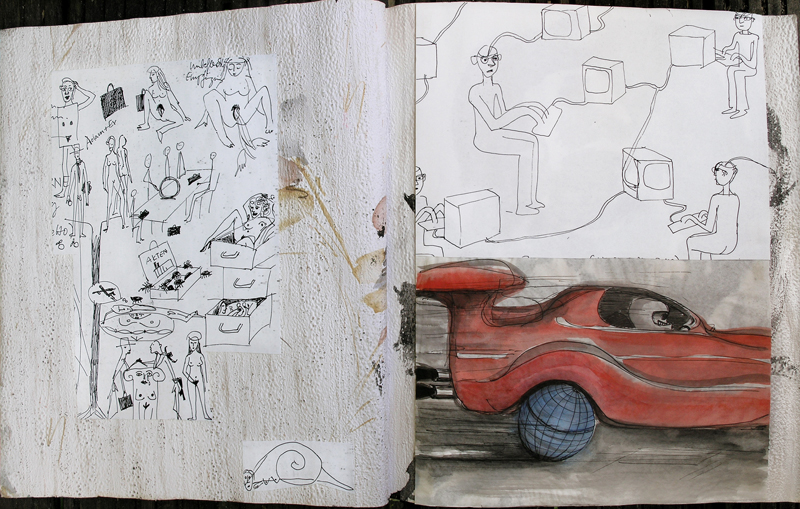 , Zeichnungen und Bilder in Tapetenmusterbuch, Mixed Media, 50 Doppelseiten, 40 x 40 x 5 cm, 1993 - 2011