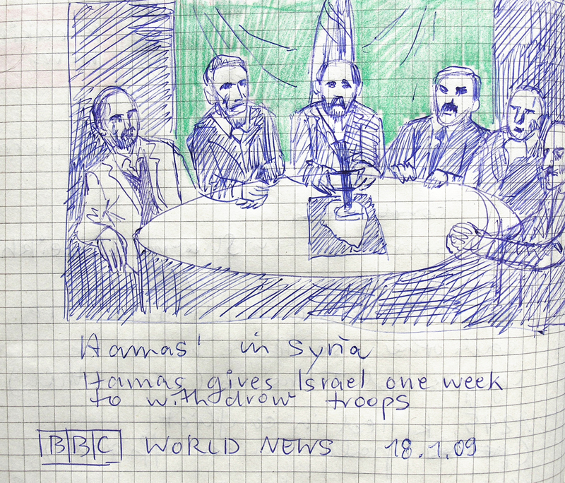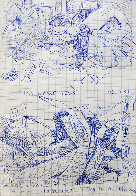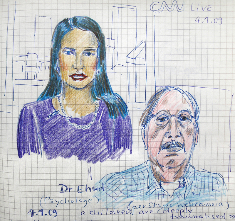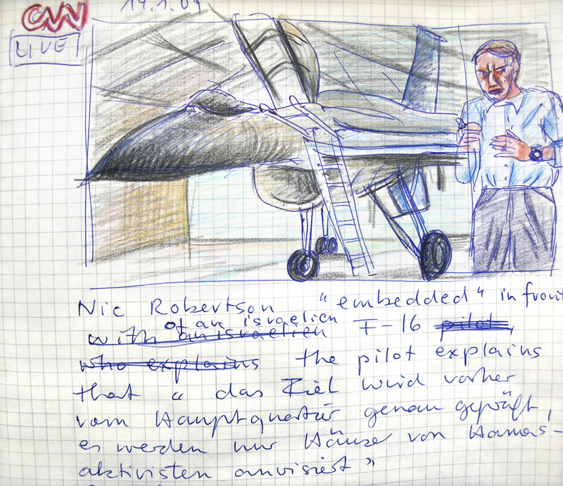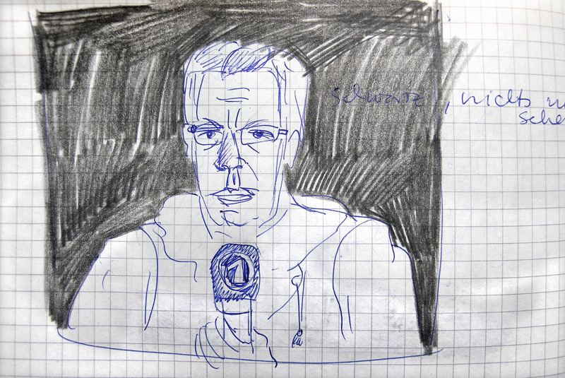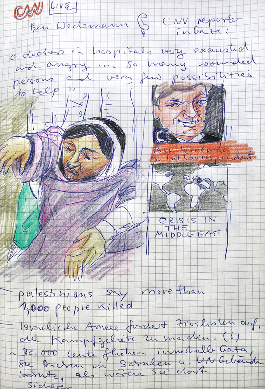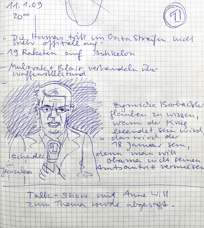 105 TV-Zeichnungen, Auswahl, Kugelschreiber/Buntstifte, Januar 2009