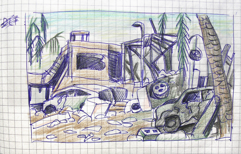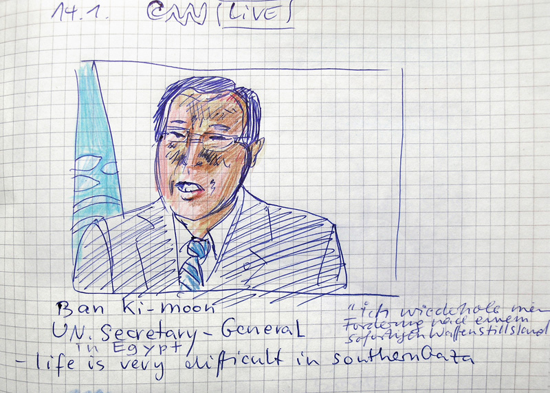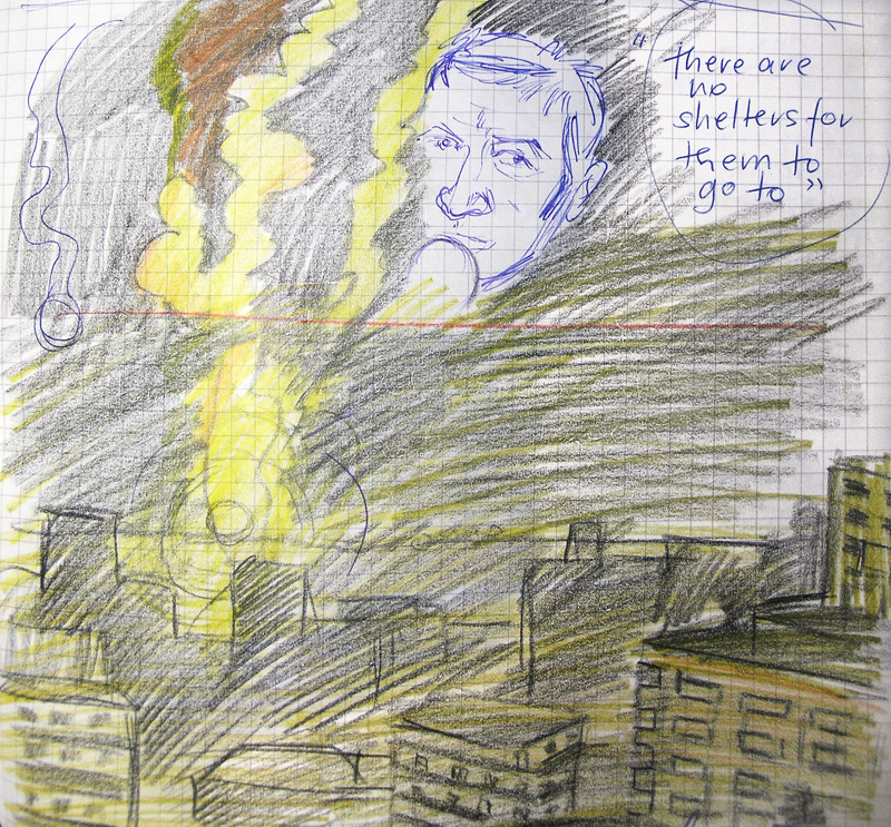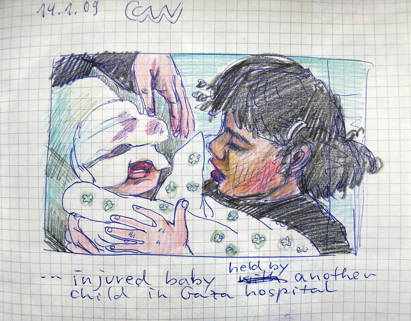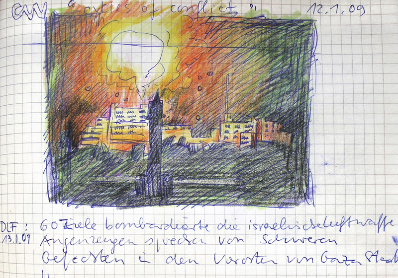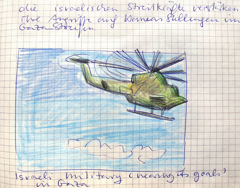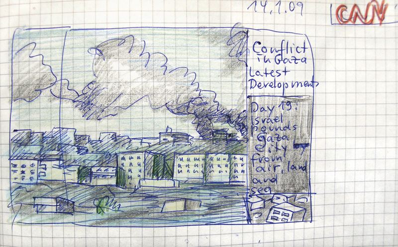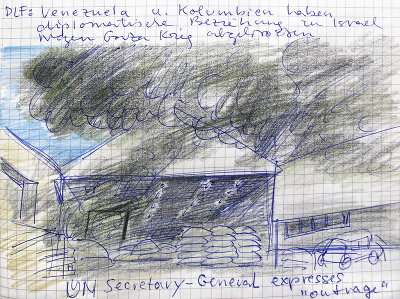 105 TV-Zeichnungen, Auswahl, Kugelschreiber/Buntstifte, Januar 2009